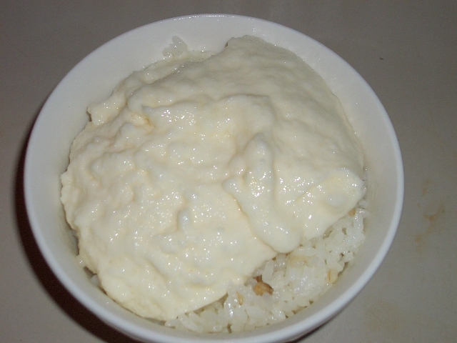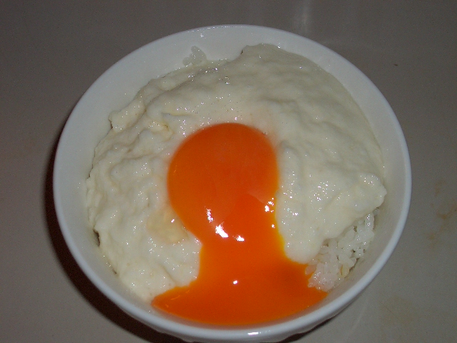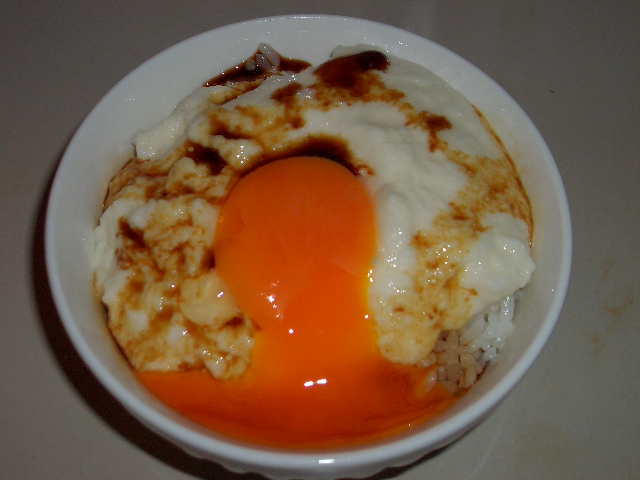 おろした山芋をかける(滑るし、手ぇかゆくなるから要注意)
