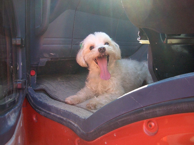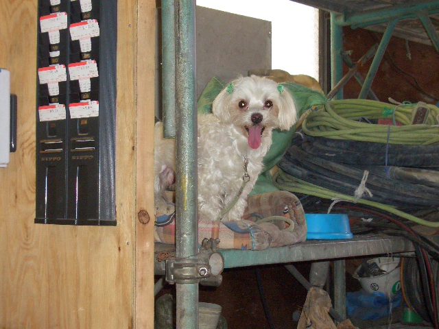 この子、ダーリンが出勤したらここに乗せられて、ダーリンが現場から帰ってくるまでお留守番してるらしい